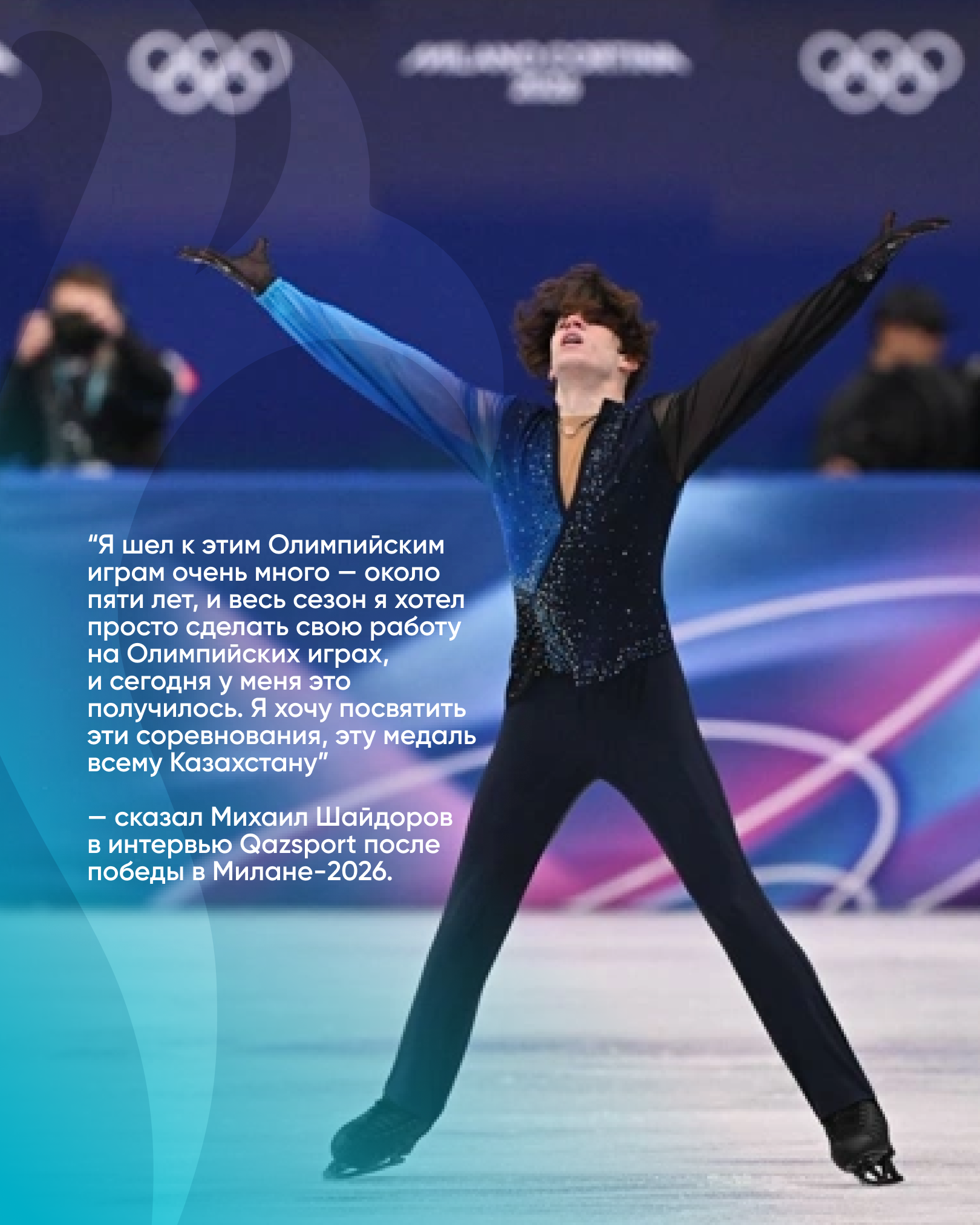 Олимпийский чемпион 2026 года в мужском одиночном катании Михаил Шайдоров обратился к казахстанским болельщикам, передает корреспондент NUR.KZ с места событий.